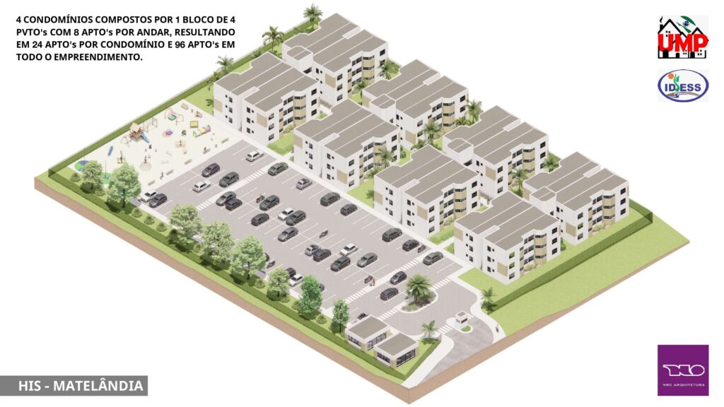 O projeto também contempla uma supercreche para atender famílias locais e áreas específicas ao esporte e à convivência comunitária. Os parques urbanos desempenham um papel essencial para proporcionar às populações urbanas ou ao contato com a natureza, promovendo a conscientização ambiental e melhorando a qualidade de vida nas cidades.