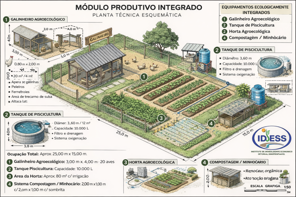 A iniciativa consiste na implementação do Sisteminha Produtivo Rural, uma tecnologia social que integra a criação de galinhas, piscicultura e horta agroecológica, promovendo segurança alimentar, sustentabilidade e autonomia das famílias beneficiadas.