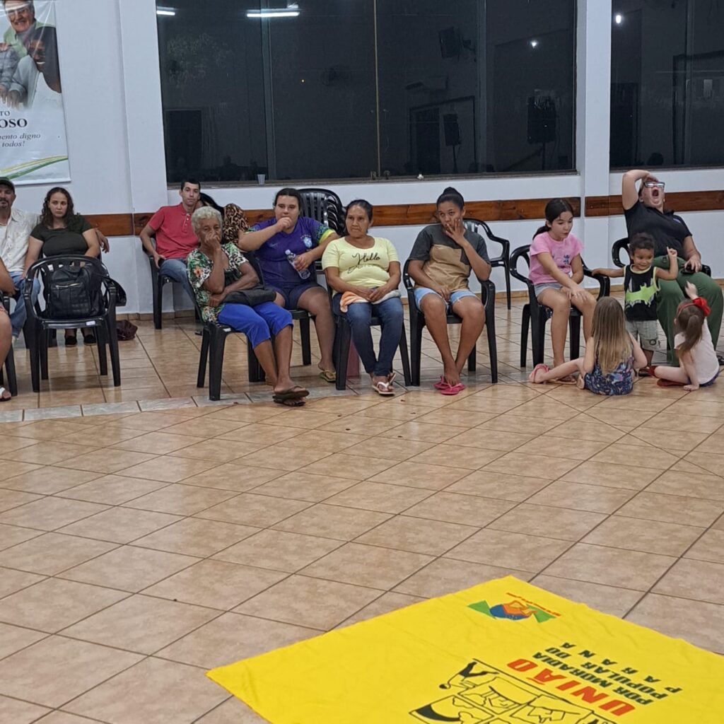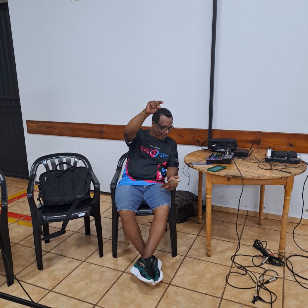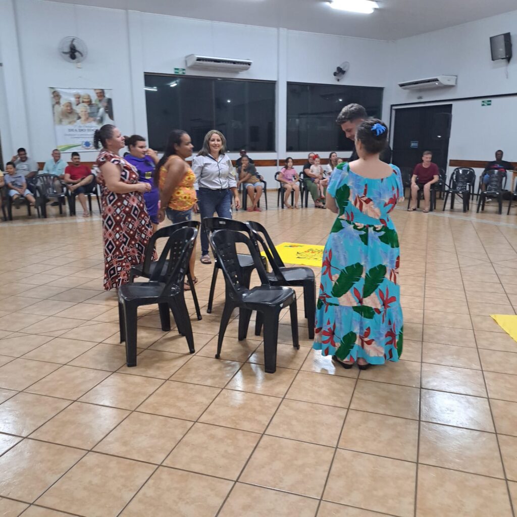 A dinâmica continuou com a tradicional brincadeira da cadeira, onde os participantes que permaneciam de pé eram convidados a compartilhar seus sonhos e visões de futuro. A atividade proporcionou momentos de descontração e profundidade, envolvendo diversas pessoas da comunidade em um clima de cumplicidade.